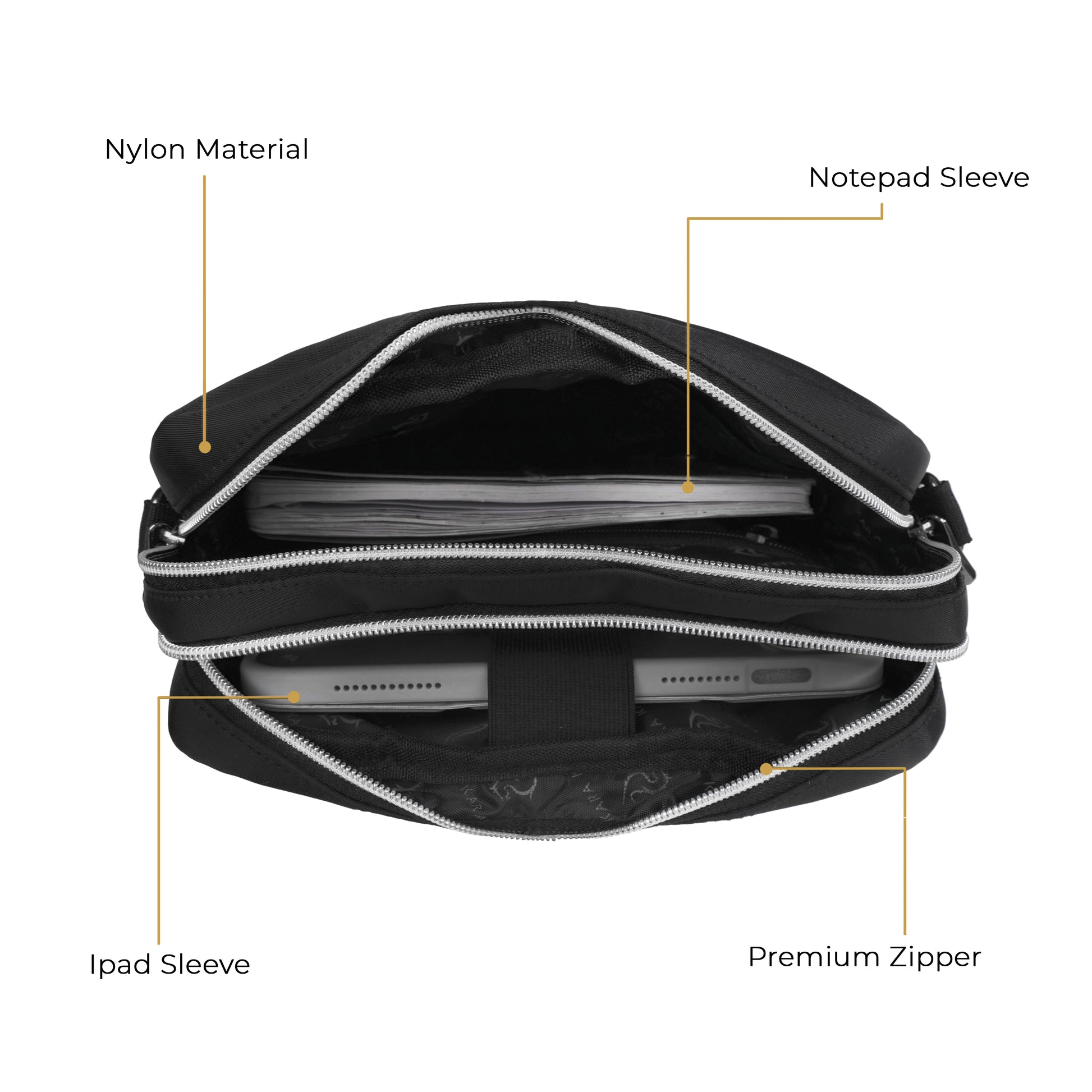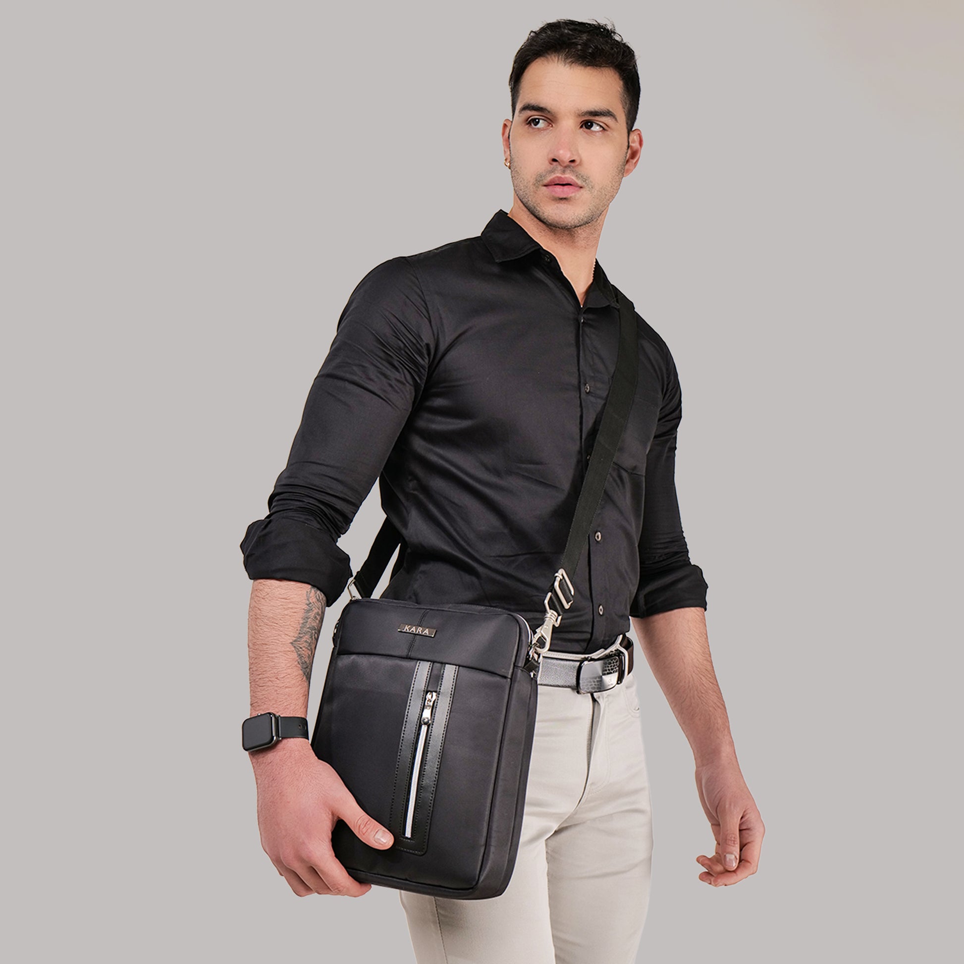 KARA Black Nylon Messenger – Sleek, Smart & Built to Perform!