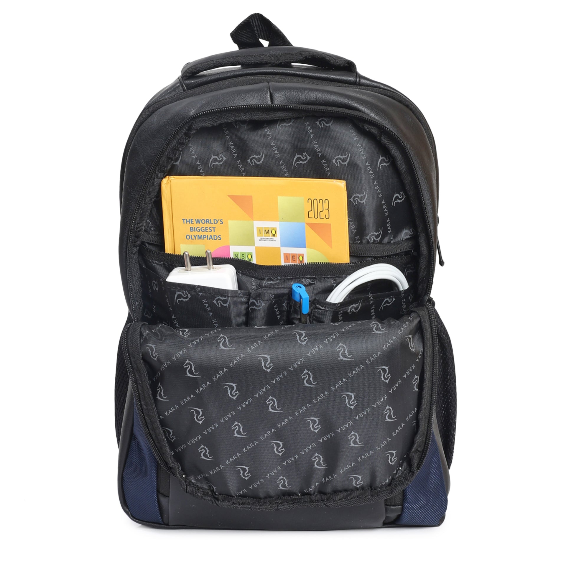 Experience the perfect blend of luxury, durability, and functionality with this premium faux leather backpack from KARA. Crafted with a sophisticated black-and-blue design, this bag is ideal for professionals, students, and travelers who demand both style and performance.