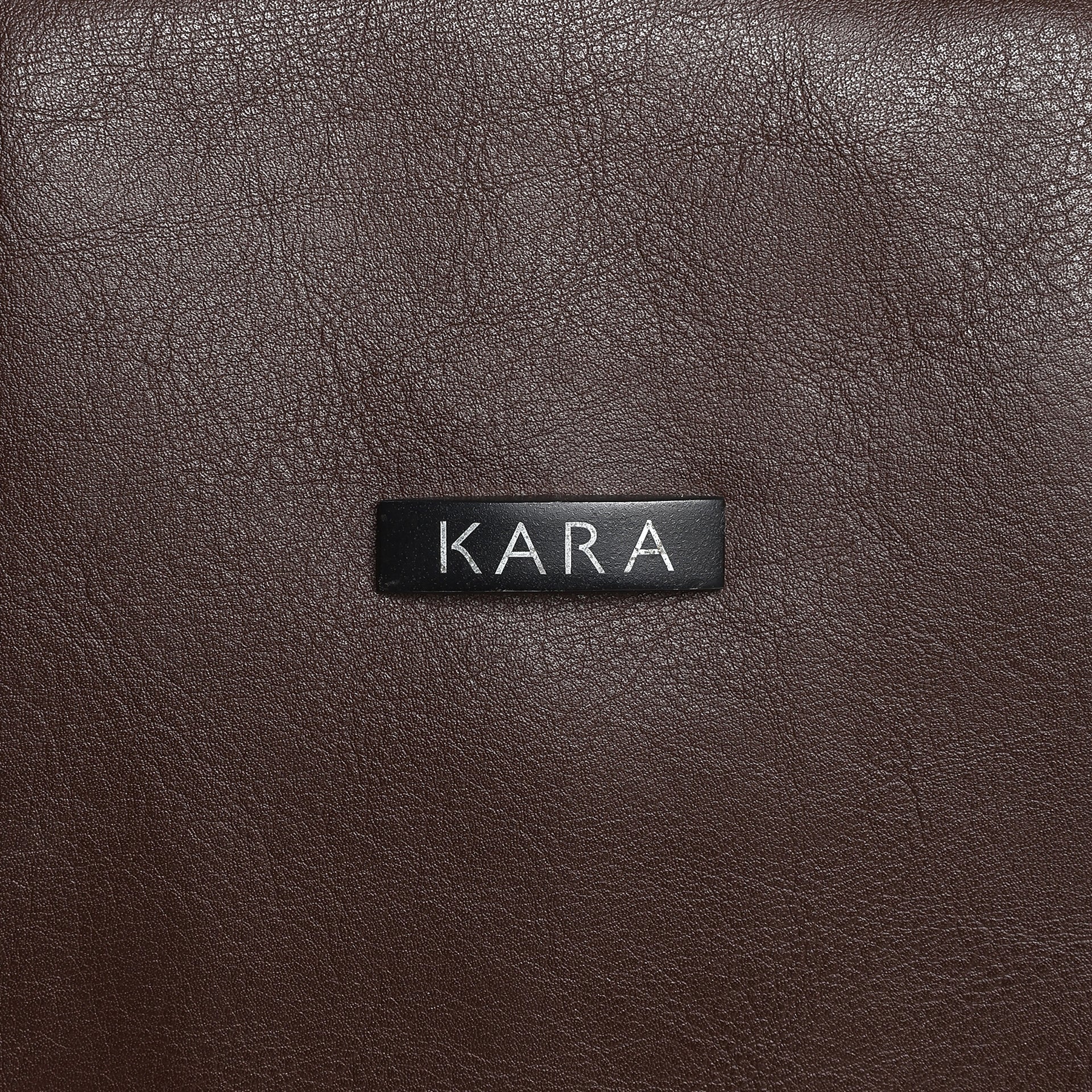 To maintain the elegance of your KARA leather item, avoid prolonged exposure to direct sunlight and moisture. Wipe gently with a soft cloth and use a leather conditioner periodically to preserve its suppleness and finish.