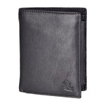 Designed to fit comfortably in both front and back pockets, its vertical construction ensures a slim profile without compromising on storage. The wallet features a secure horizontal coin pocket with a snap fastener, ideal for keeping keys and loose change organized.