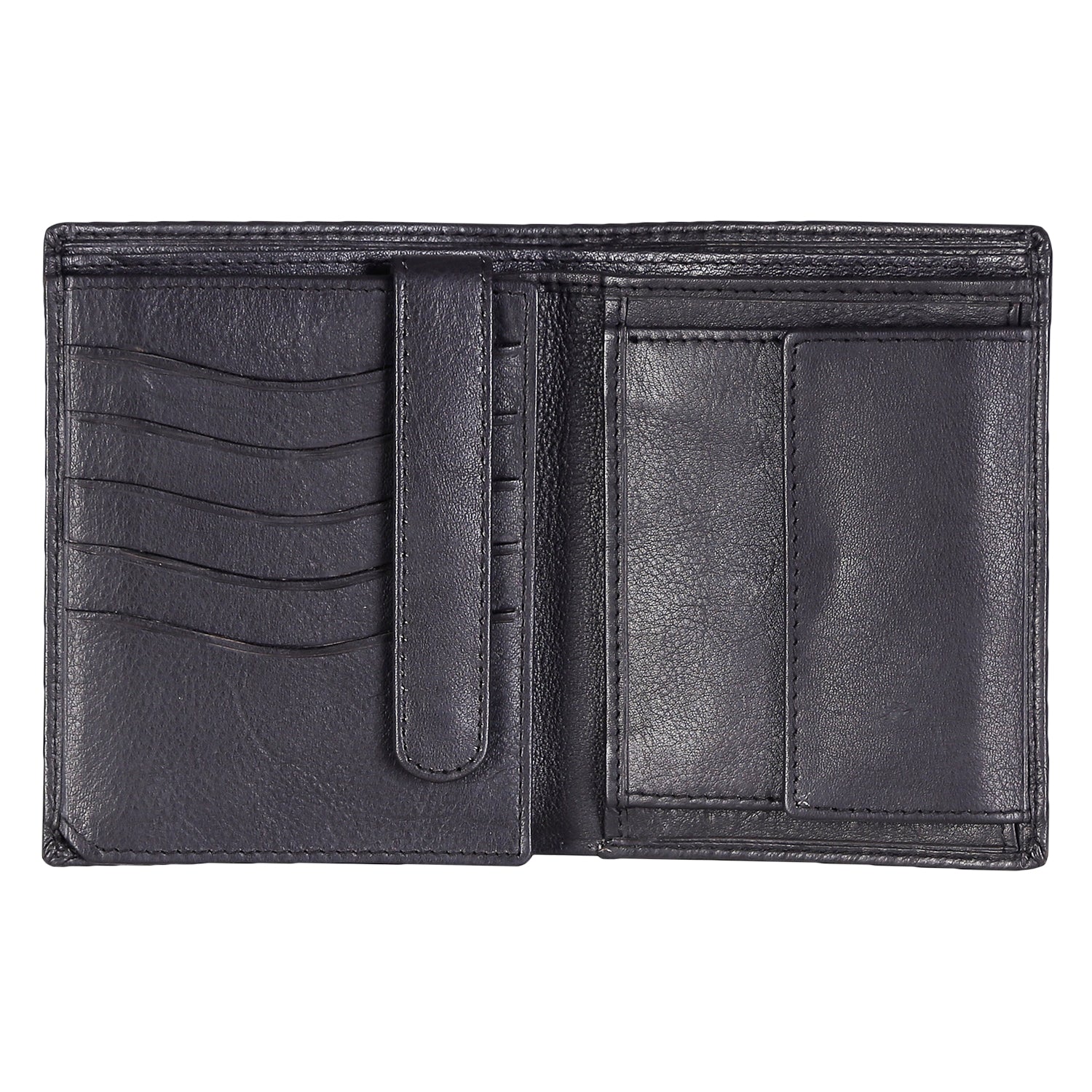 Designed to fit comfortably in both front and back pockets, its vertical construction ensures a slim profile without compromising on storage. The wallet features a secure horizontal coin pocket with a snap fastener, ideal for keeping keys and loose change organized.