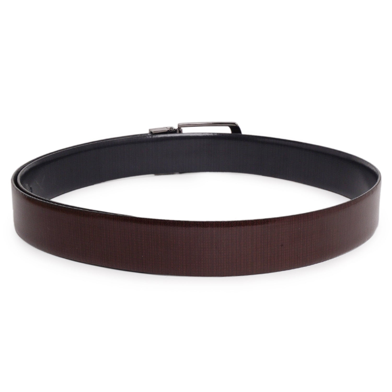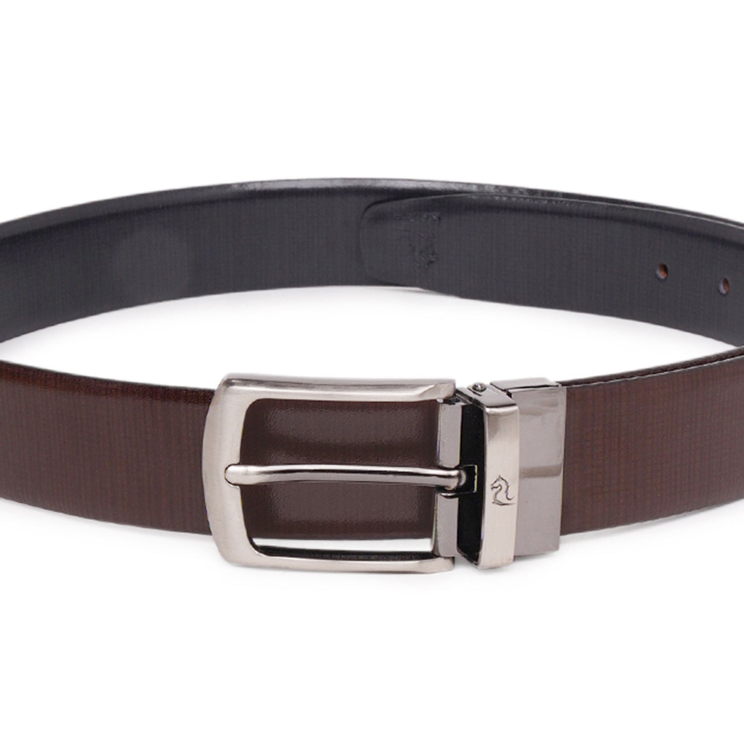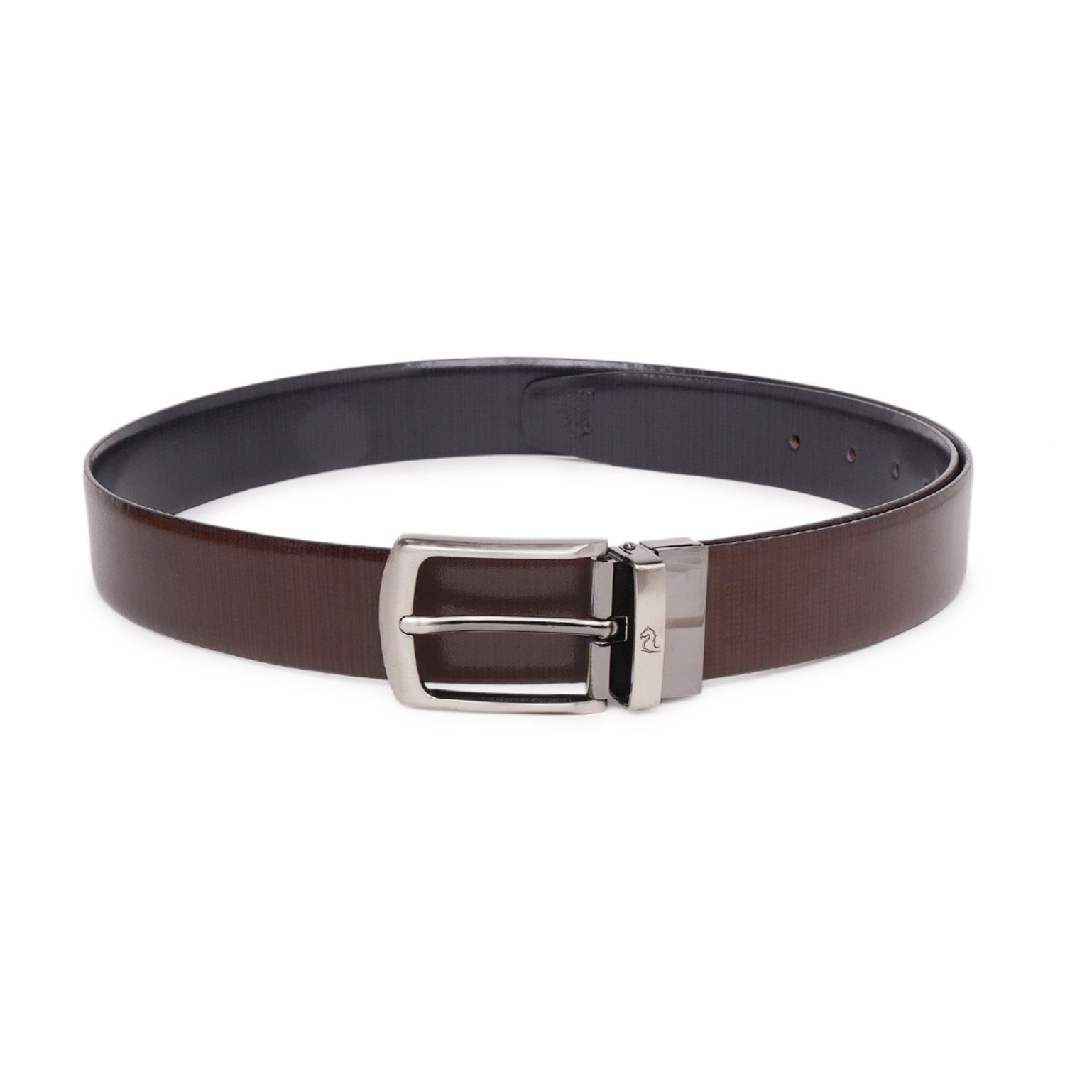With its smart reversible design, switch effortlessly between classic black and rich brown to complement any formal ensemble. The ultra-luxe textured finish and sleek metallic buckle bring a polished, sophisticated edge to your wardrobe.