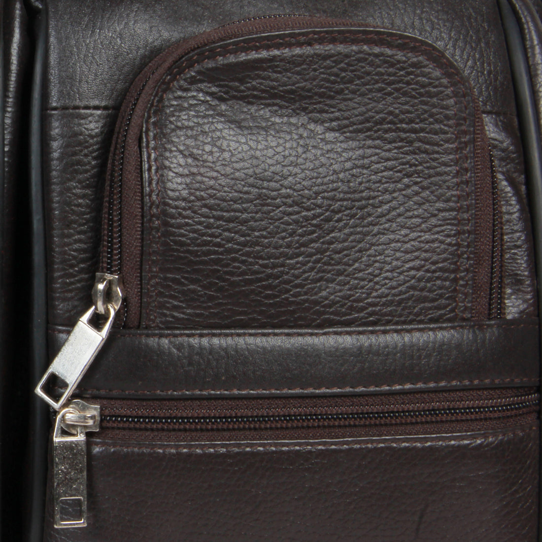 Front Panel: 4 zip pockets + 1 large organizer zip pocket (with phone, diary, notepad, key holder slots)