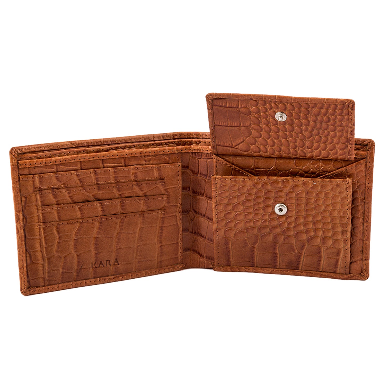 Sophisticated and stylish, the KARA Camel Croco Wallet is a premium handcrafted accessory made from genuine leather with an elegant croc-embossed finish. Its warm camel tone exudes refined charm, while the sleek design ensures a comfortable fit in your pocket without compromising on space.