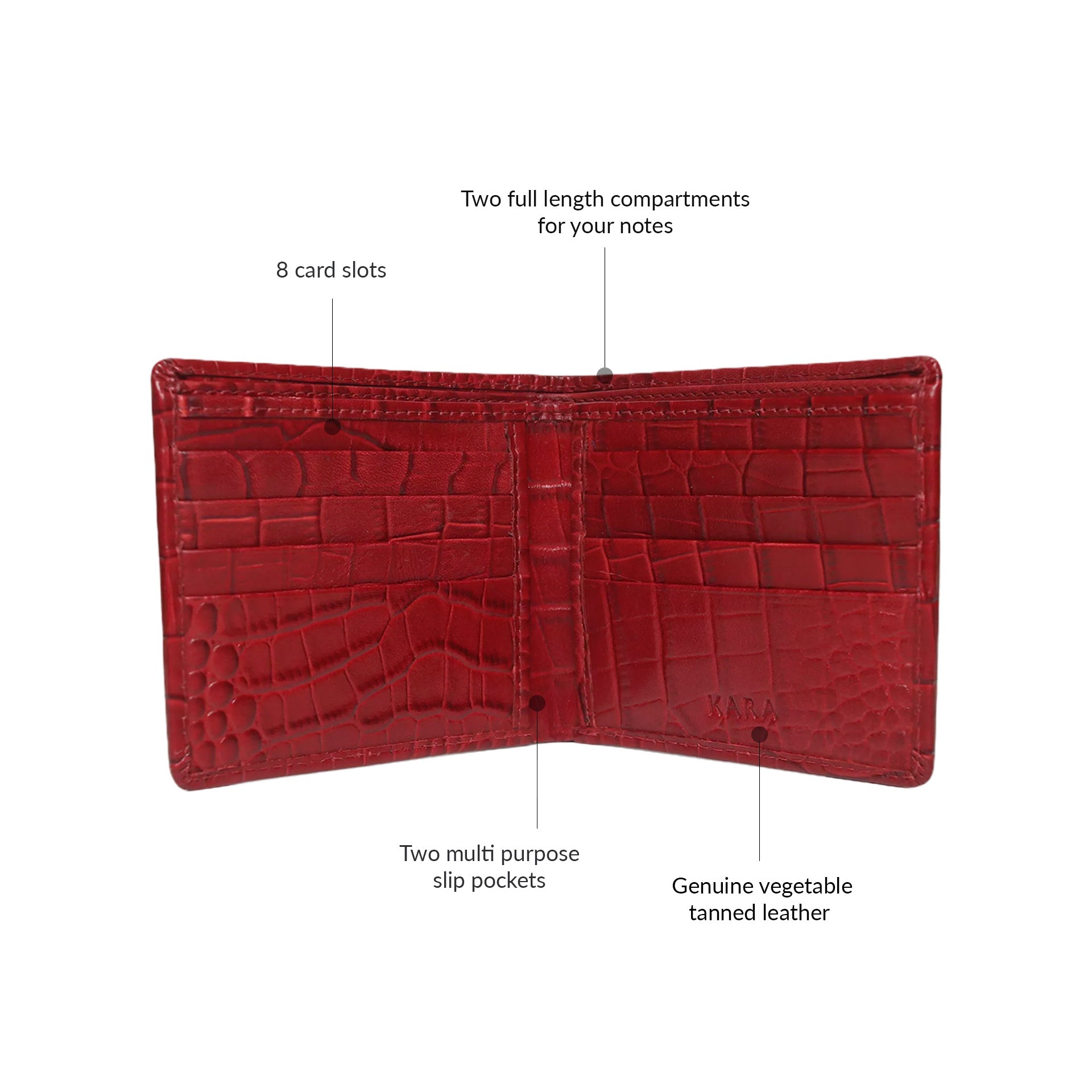 KARA Croco Red Bifold Wallet – Premium Craftsmanship, Everyday Convenience!