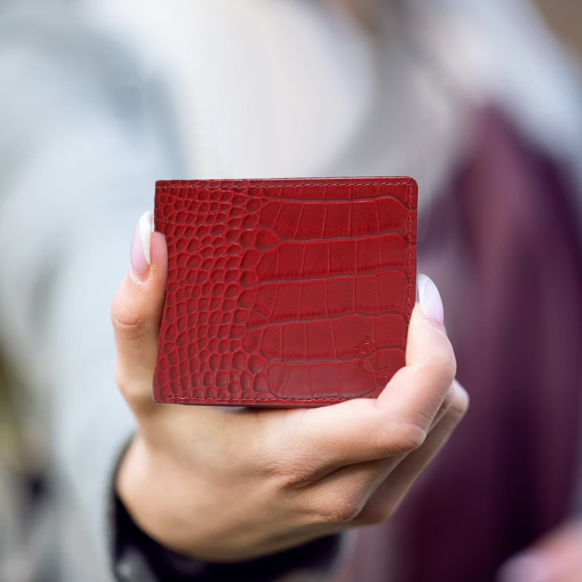 Designed for modern elegance, the KARA Croco Red Bifold Wallet combines luxury, durability, and practicality in one sleek accessory. Handcrafted from premium genuine leather, this soft yet durable wallet features a croc-embossed finish, adding a refined touch to your essentials. With multiple compartments for cards, cash, and essentials, it ensures seamless organization while maintaining a slim, sophisticated profile. A statement of style and convenience, this bifold wallet is an everyday essential for men who appreciate fine craftsmanship.