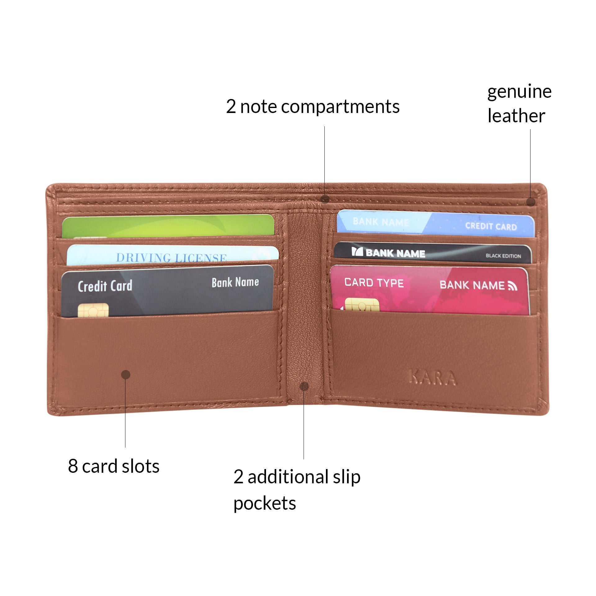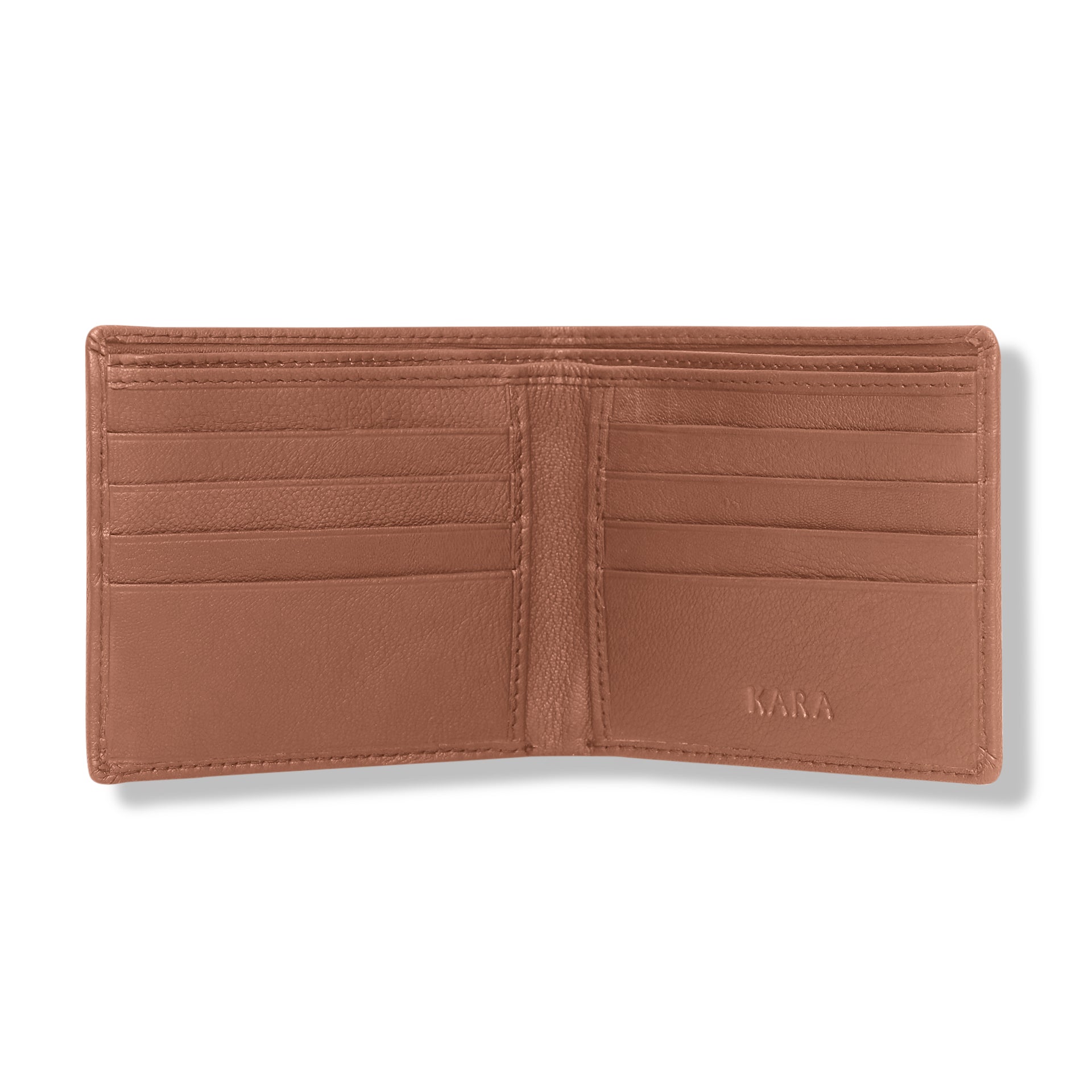 KARA के क्लासिक टैन लेदर वॉलेट के साथ अपने रोज़मर्रा के काम को और भी बेहतर बनाएँ। प्रीमियम असली नप्पा लेदर से बना यह स्लीक और परिष्कृत बाइफोल्ड वॉलेट लग्जरी और कार्यक्षमता का सही संतुलन प्रदान करता है। वॉलेट में 8 कार्ड स्लॉट, 2 नोट कम्पार्टमेंट और 2 स्लिप पॉकेट हैं, जो आपके ज़रूरी सामान को बिना ज़्यादा वज़न के रखने के लिए पर्याप्त जगह प्रदान करते हैं। इसके हाथ से बने डिज़ाइन को सामने और अंदर दोनों तरफ़ हीट-एम्बॉस्ड लोगो द्वारा उभारा गया है, जो लालित्य का स्पर्श जोड़ता है।