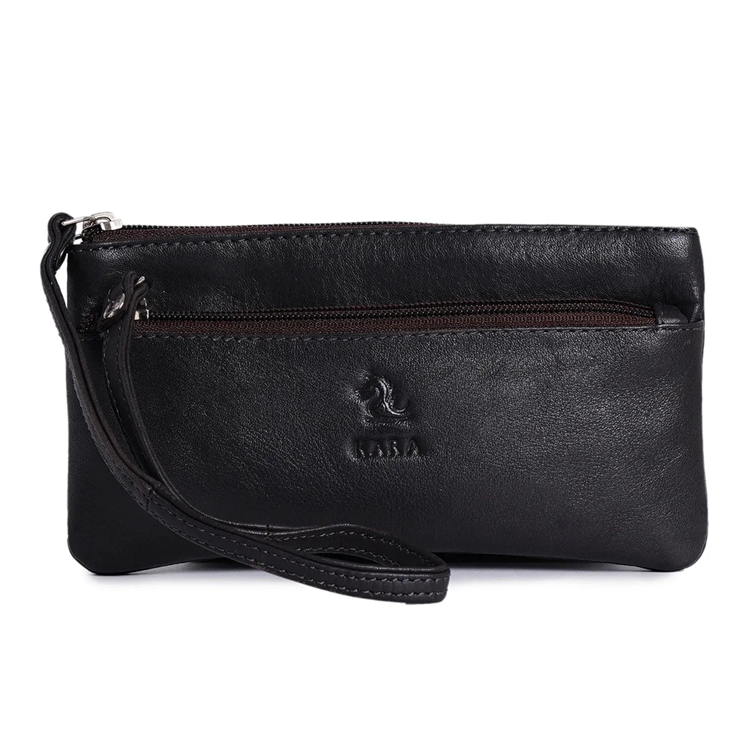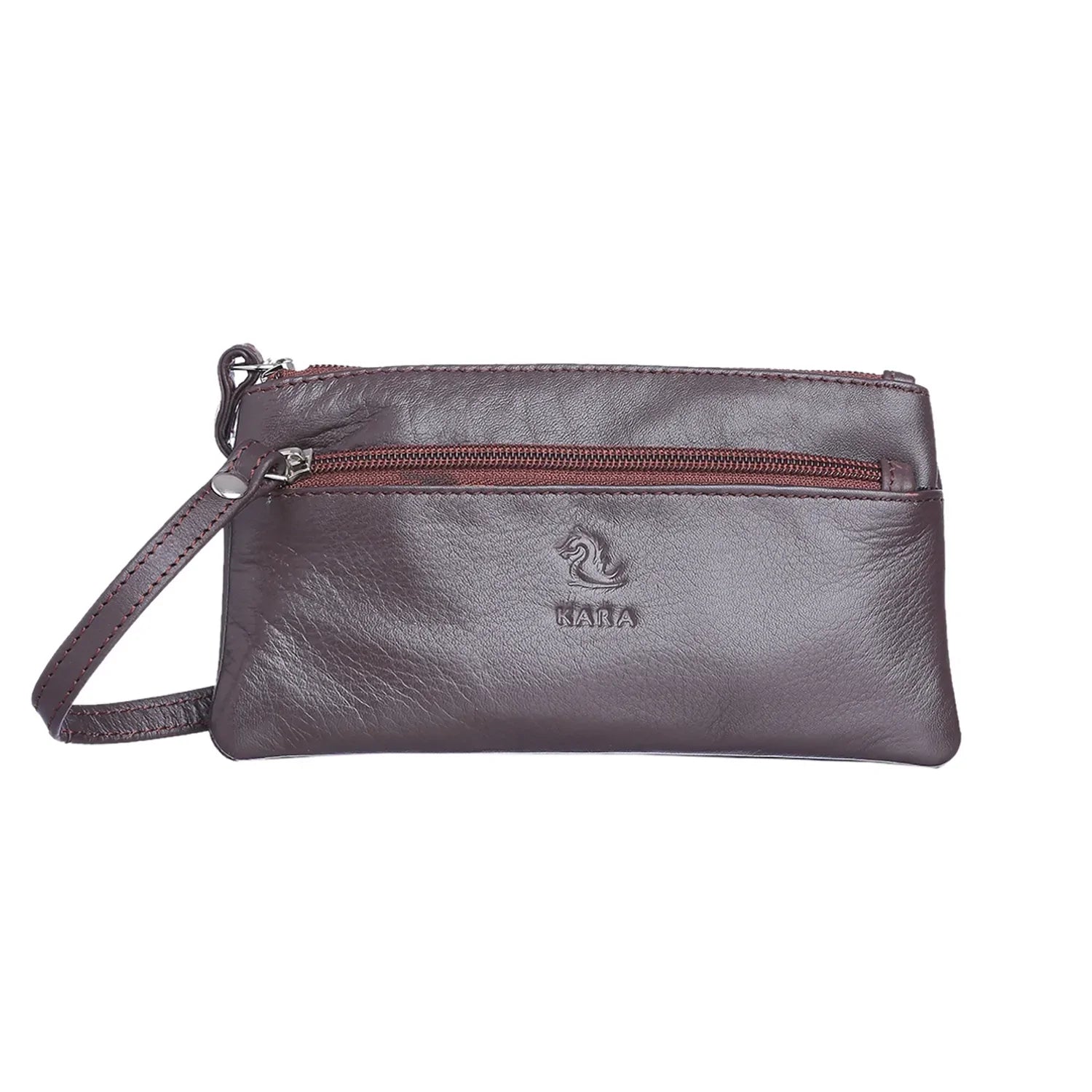 कारा ब्राउन लेदर हैंड पाउच - प्रीमियम लेदर, अधिकतम सुविधा!