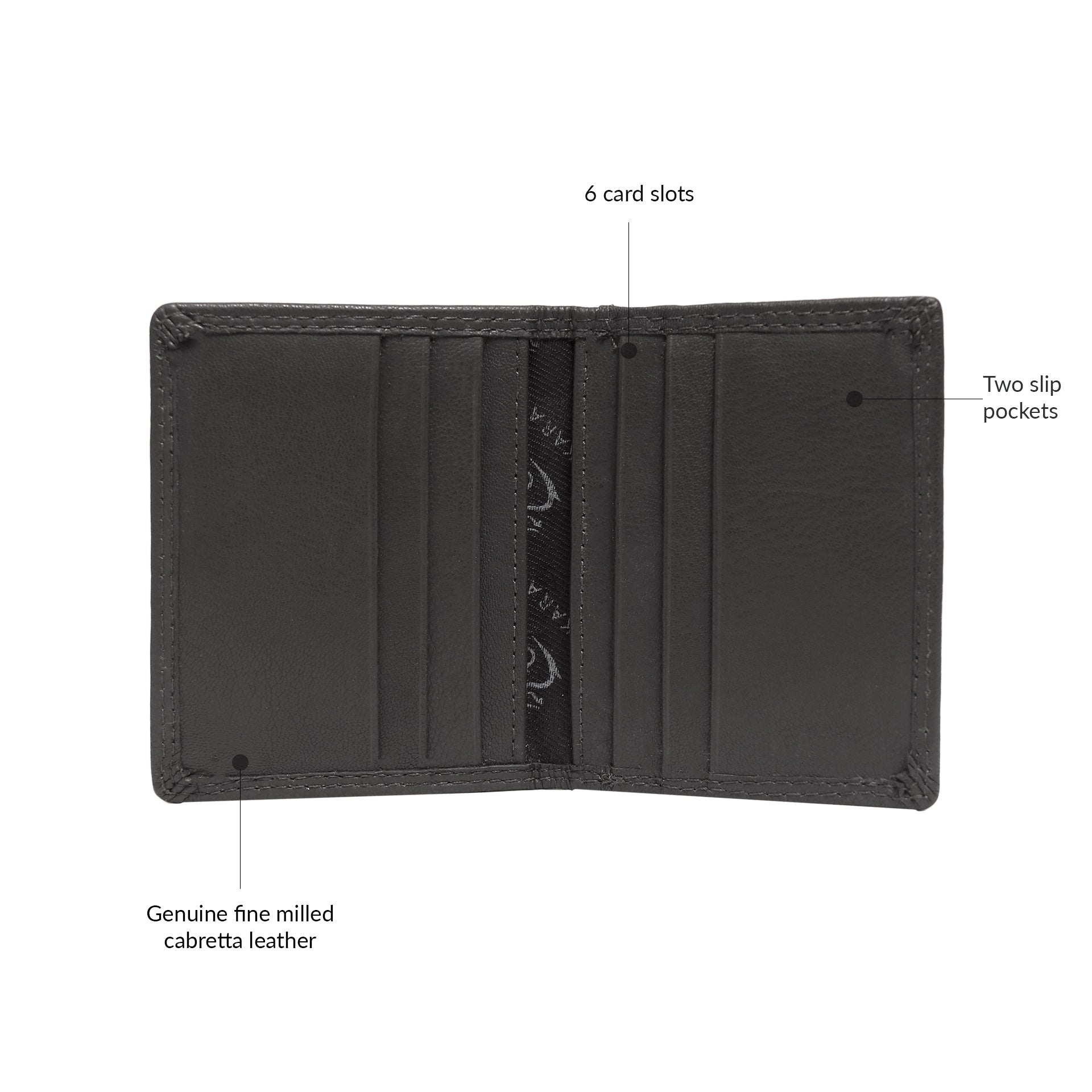 - व्यवस्था के लिए 6 कार्ड स्लॉट और 2 स्लिप पॉकेट