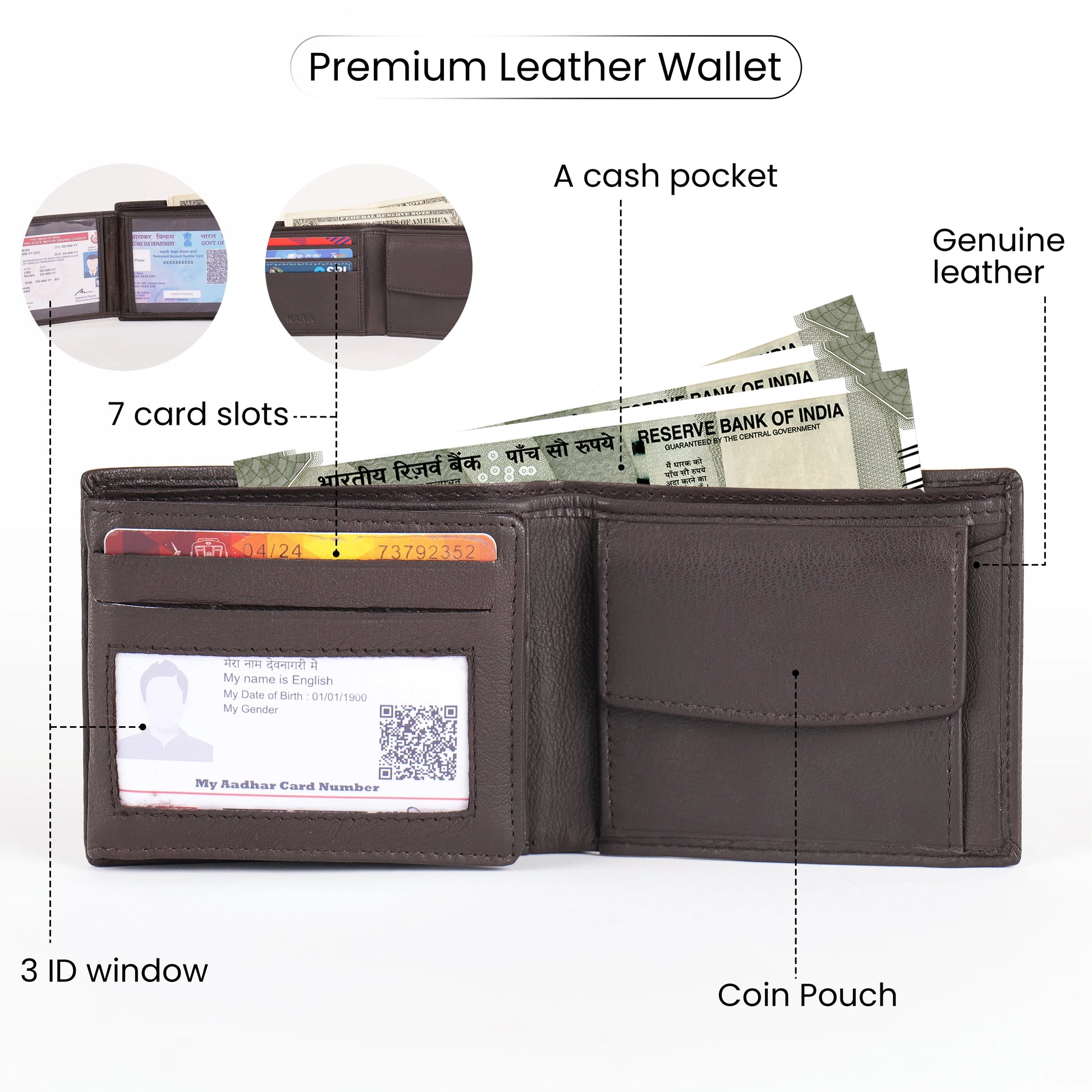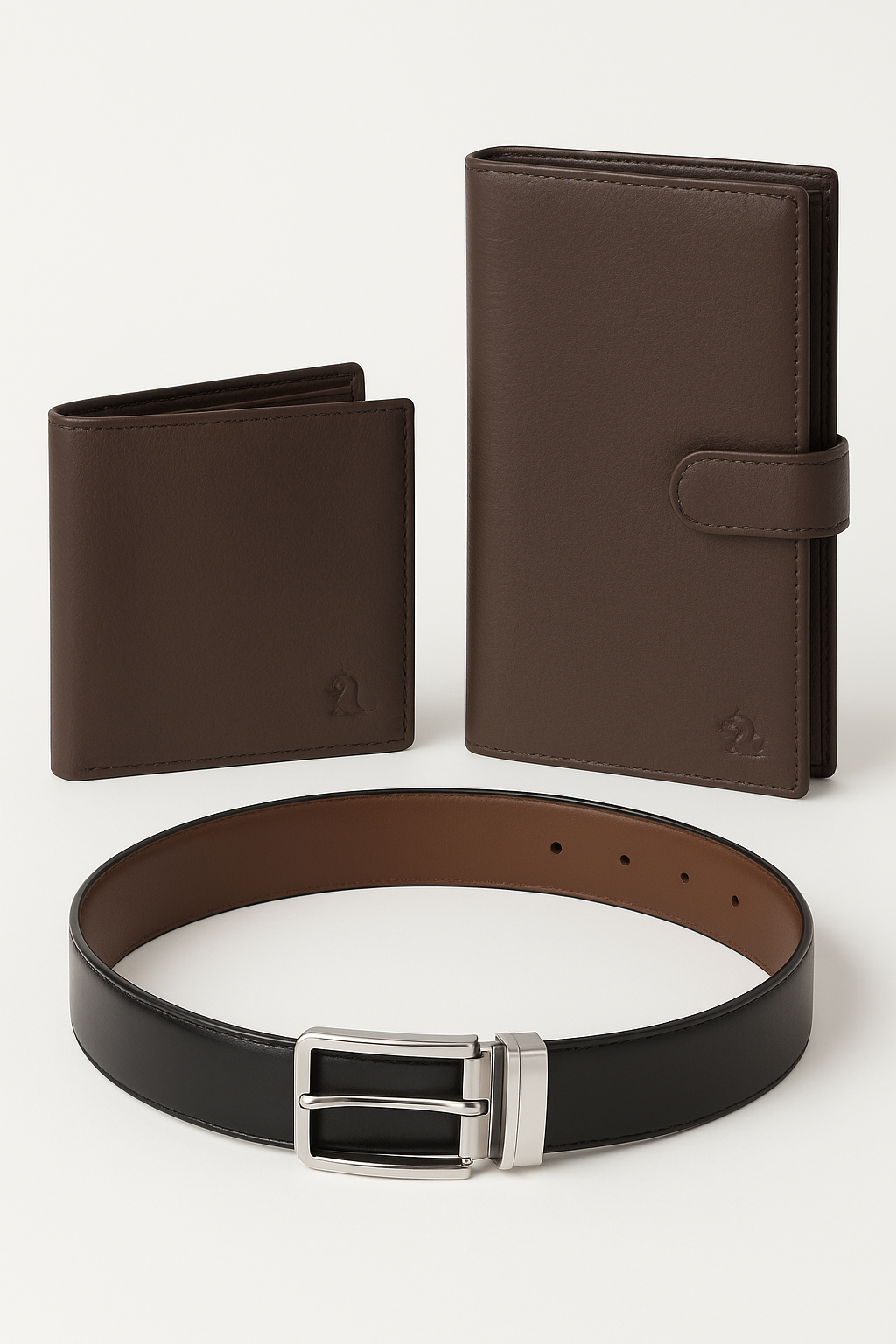 - Brown Elegant Leather Wallet : This premium wallet offers space, security, and sophistication for cards and currency – perfect for the traveling gentleman.