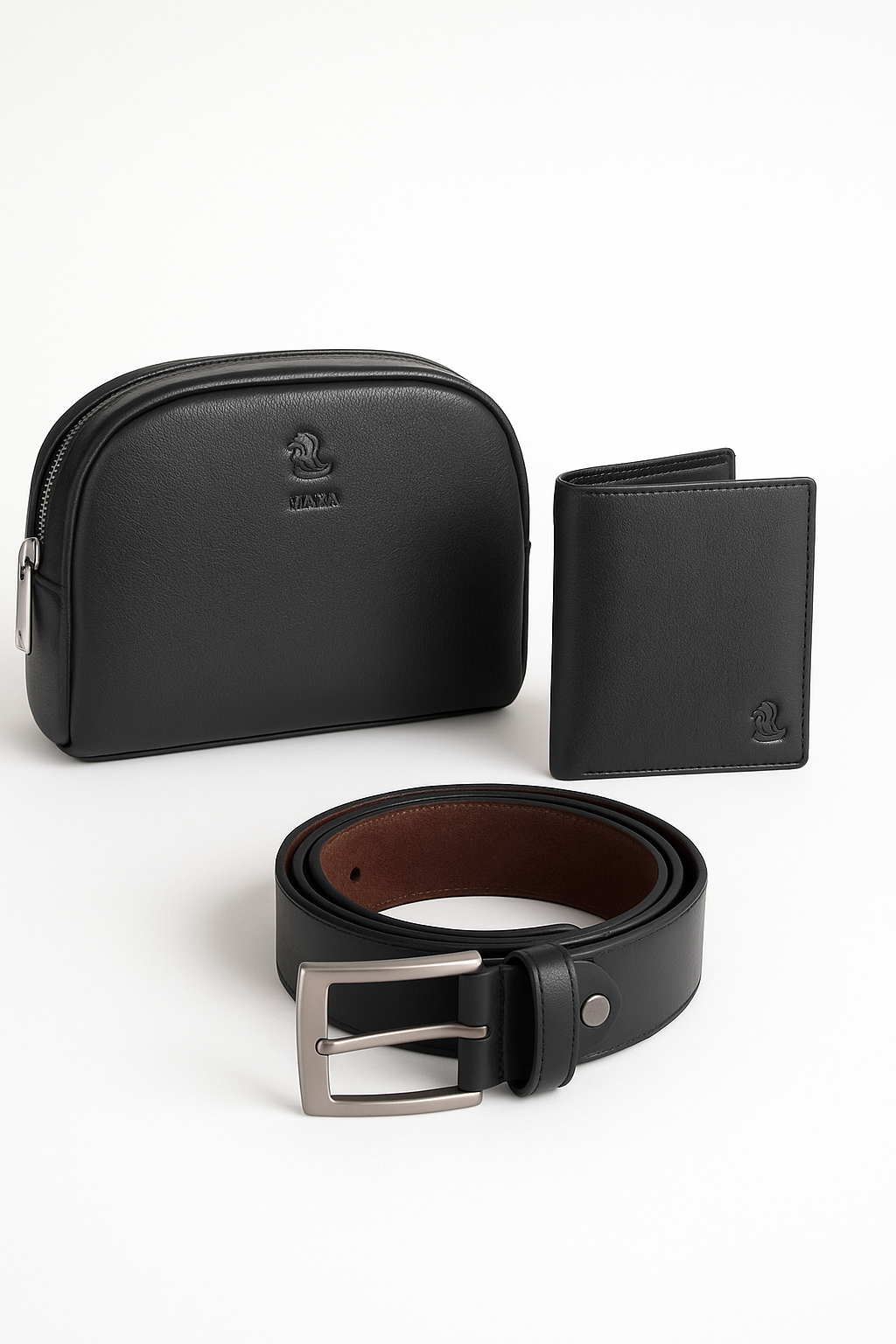 Organized Essentials Leather Gift Set, Wallet, Belt & Toiletry Bag Combo