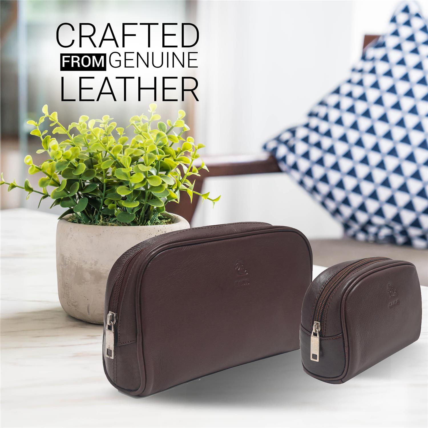 कारा यूनिसेक्स टैन लेदर वॉश बैग - आधुनिक यात्रियों के लिए डिज़ाइन किया गया!