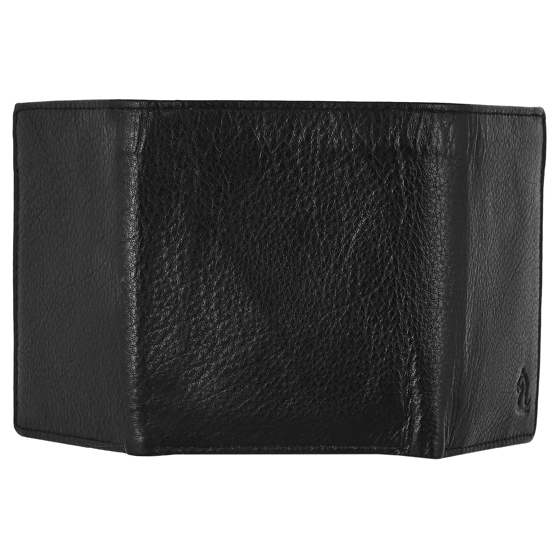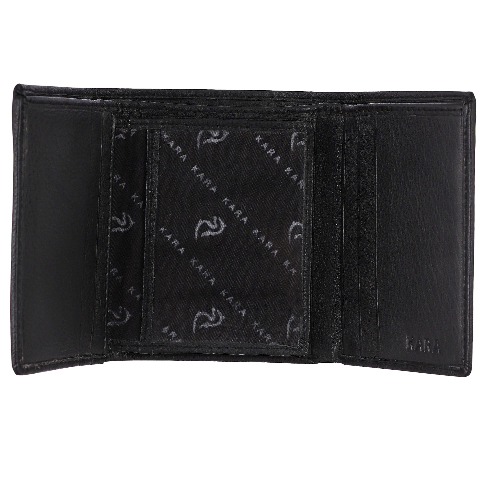 काले रंग में कारा ट्राइफोल्ड वॉलेट - कालातीत सुंदरता के साथ टिकाऊपन