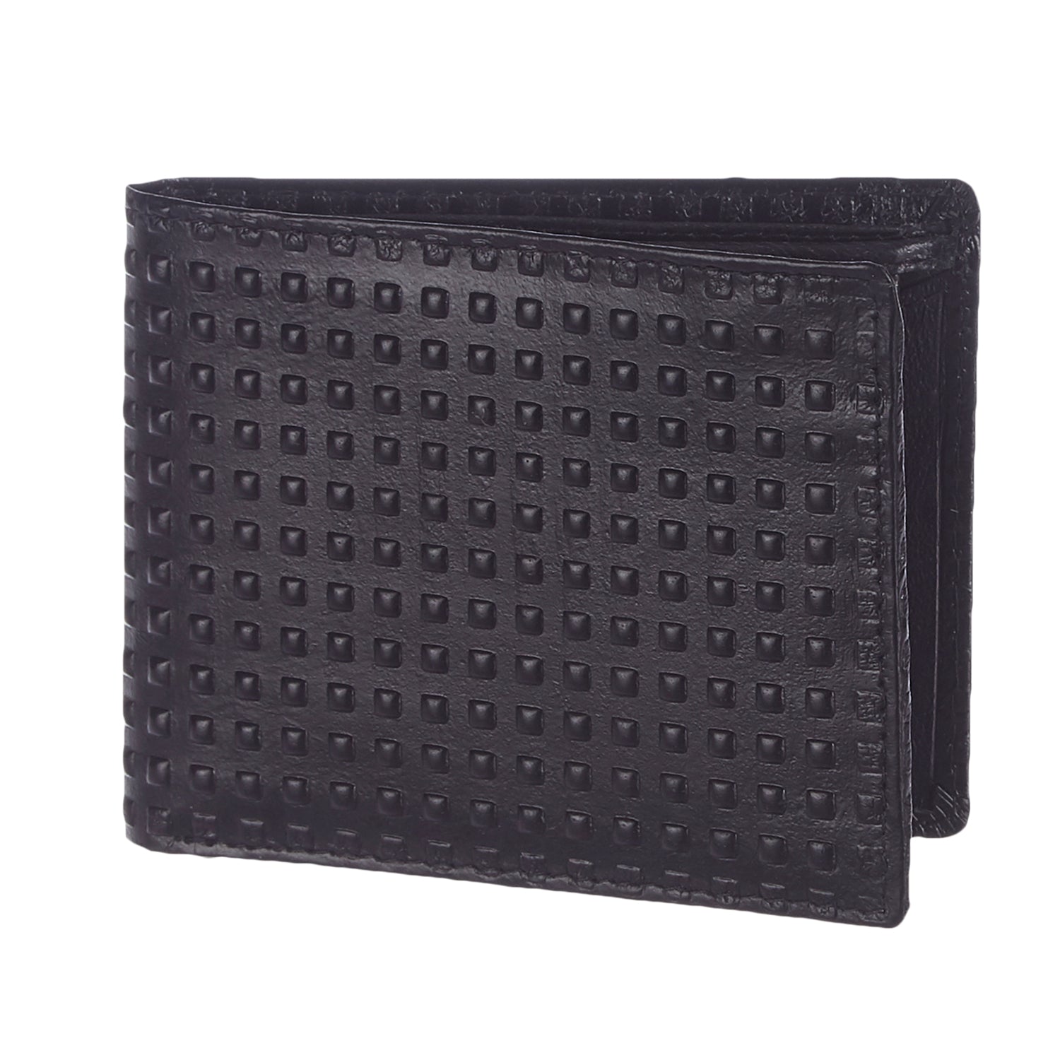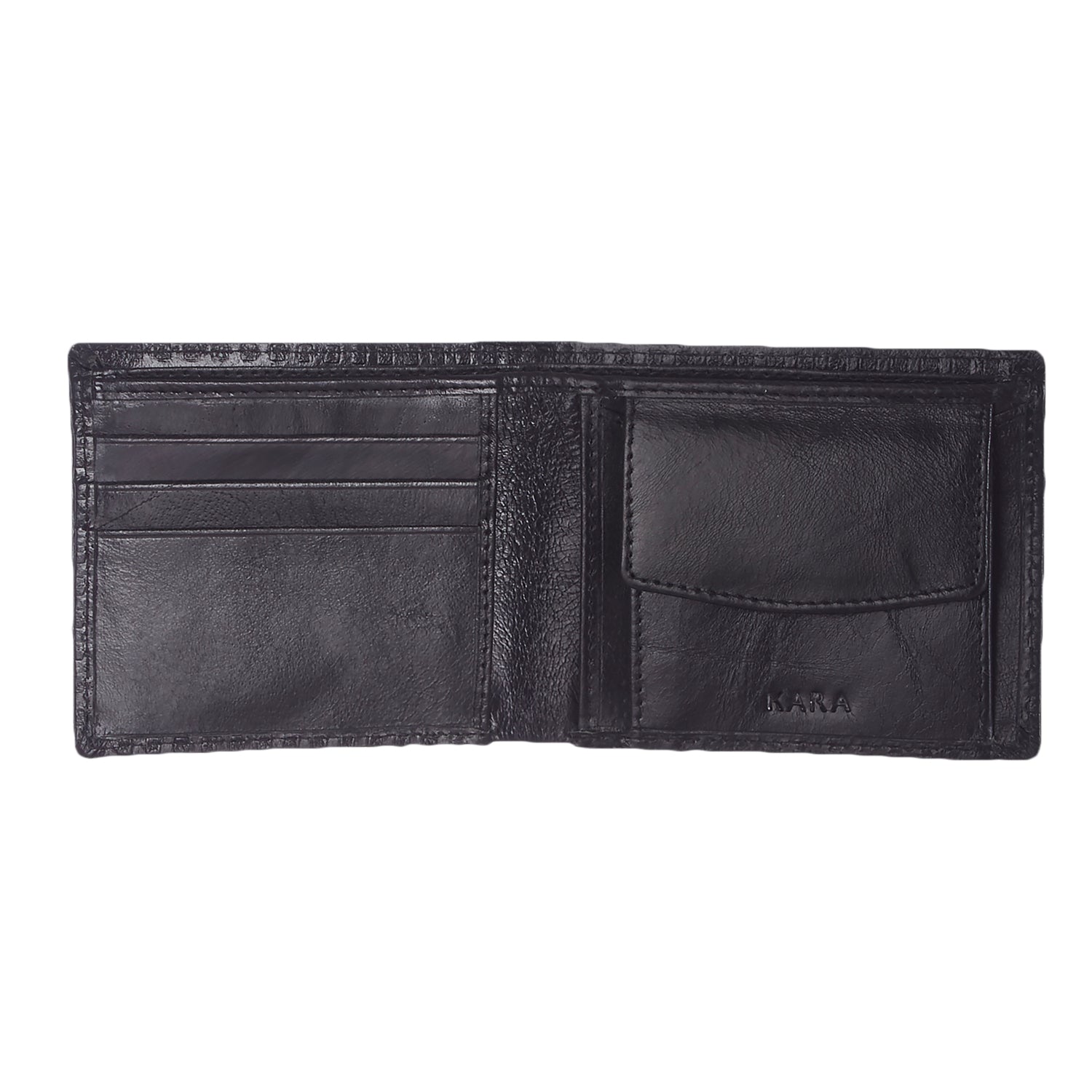 कारा ब्लैक टेक्सचर्ड बाइफोल्ड वॉलेट - शिल्प कौशल और शैली का एक आदर्श मिश्रण