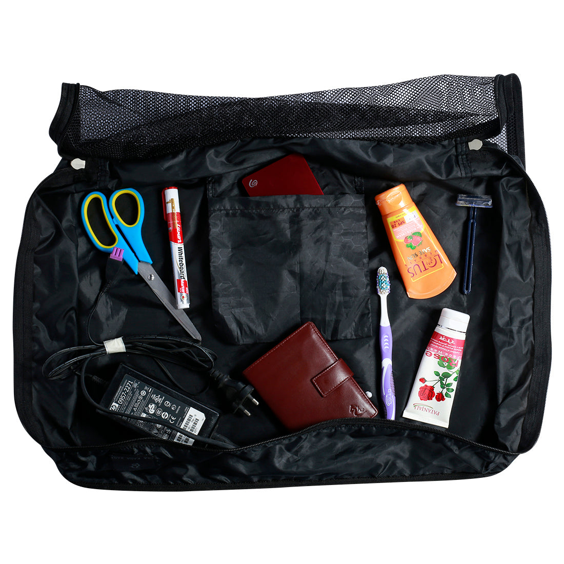 यह इस्त्री किए हुए कपड़े, सौंदर्य प्रसाधन, तौलिये, दवाइयां, सेलफोन, केबल और इलेक्ट्रिक उत्पादों के लिए एक अच्छा भंडारण बैग है।