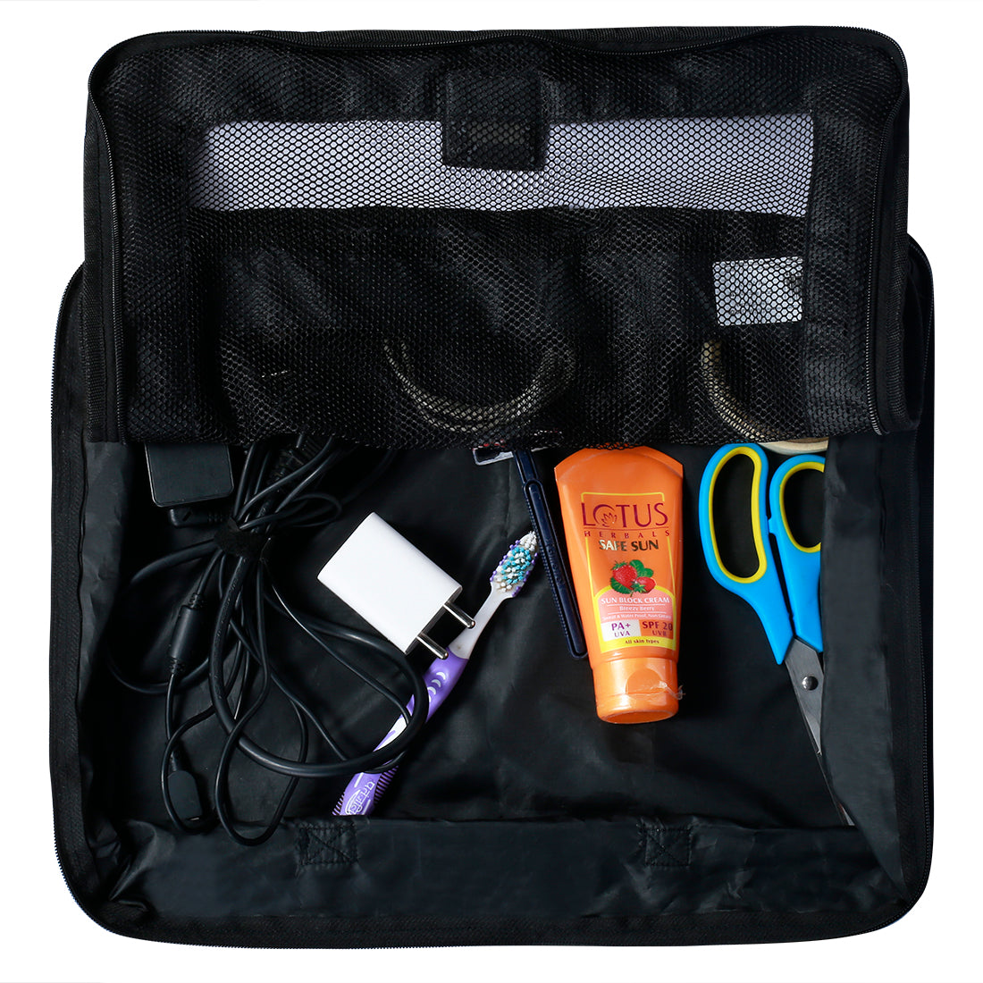 यह इस्त्री किए हुए कपड़े, सौंदर्य प्रसाधन, तौलिये, दवाइयां, सेलफोन, केबल और इलेक्ट्रिक उत्पादों के लिए एक अच्छा भंडारण बैग है।
