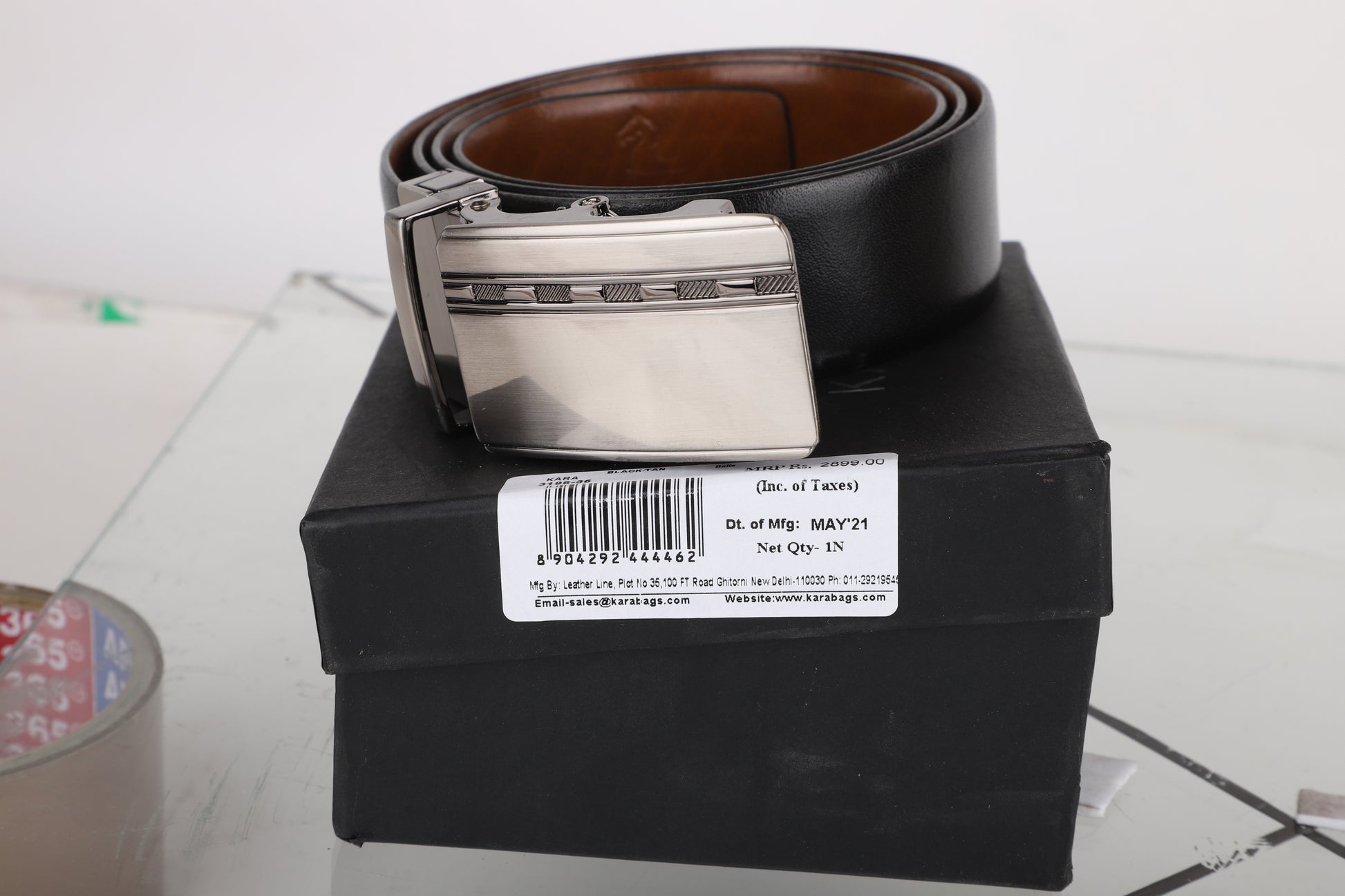 KARA Black & Tan Reversible Leather Belt – Where Style Meets Versatility!