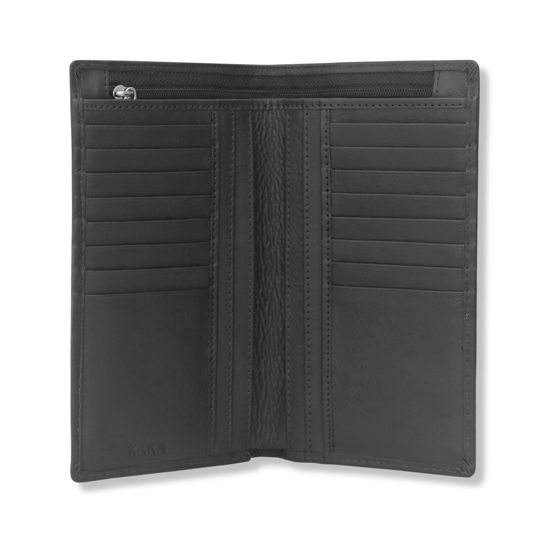 KARA uses premium full-grain, top-grain, and vegetable-tanned genuine leather. Each leather type is ethically sourced and selected for its exceptional durability, rich texture, and timeless elegance in wallets, belts, and bags.